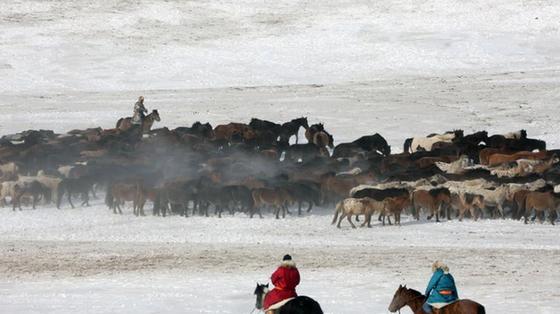 錫林郭勒進行套馬馴馬表演 萬馬奔騰場面壯觀