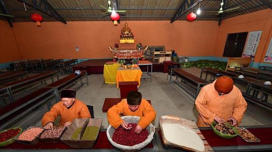 臘八節(jié)將至,河南省平頂山市魯山縣的大雷音寺熬粥供佛、向信眾施粥,祈求如意安康。