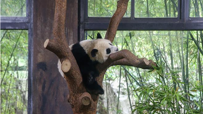 6月1日,上海野生動(dòng)物園舉行命名儀式,宣布一只10個(gè)月大的大熊貓寶寶被正式命名為“七七”。
