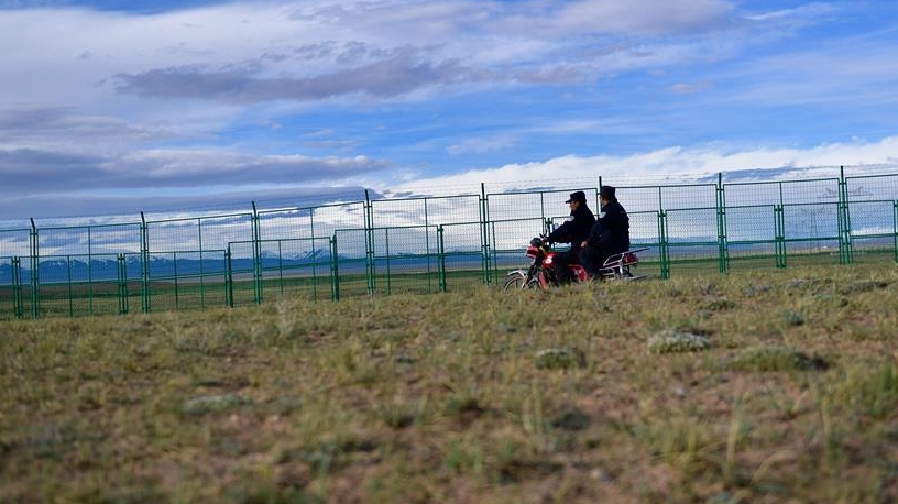 在可可西里索南達杰保護站管護區(qū)域,龍周才加與隊友們乘車巡視。