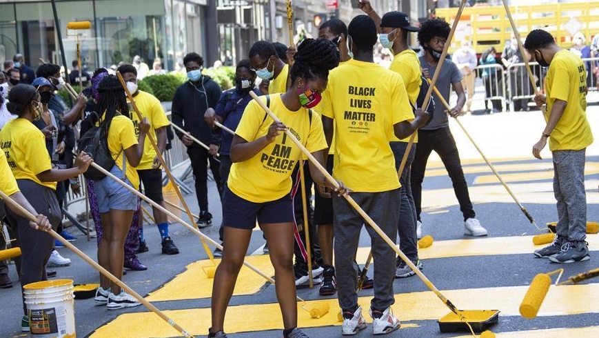 紐約特朗普大廈前路面涂上“黑人的命也是命”標語