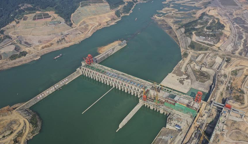 節(jié)日期間,工人們在位于廣西桂平市西江流域黔江河段的大藤峽水利樞紐工程現場加緊施工。