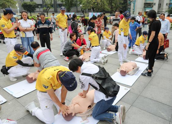 深圳市賽場救護(hù)隊(duì)的專業(yè)人員在現(xiàn)場為蓮花一村的社區(qū)居民普及了大眾急救技能,并指導(dǎo)大家進(jìn)行模擬心肺復(fù)蘇的演練,中老年朋友則享受了免費(fèi)的體質(zhì)檢測服務(wù)。
