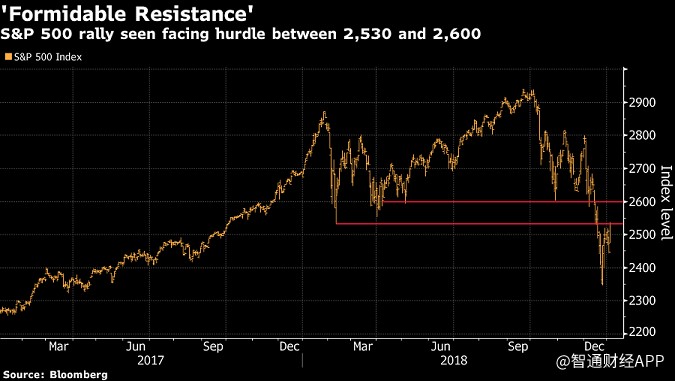 下圖顯示了標(biāo)準(zhǔn)普爾500指數(shù)(S&P500)10-11月10%的跌幅,但跌幅并未持續(xù)。現(xiàn)在,過去的支撐位已經(jīng)變成了指數(shù)的頂部。