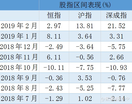 截至發(fā)稿,恒指2月累計(jì)上漲2.97%,同期滬指、深成指分別上漲13.81%與21.52%。下圖統(tǒng)計(jì)了去年6月至今年2月的主要股指區(qū)間表現(xiàn),可以看到,今年開年以來,兩地市場的表現(xiàn)幾乎可以用“靚眼”來形容。