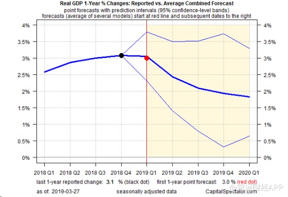 每季度更新的GDP同比數(shù)據(jù)趨勢也表明,美國經(jīng)濟(jì)出現(xiàn)下滑?!顿Y本觀察家》通過一系列綜合預(yù)測得出的平均預(yù)測值顯示,今年第一季度的同比增幅將從去年第四季度的3.1%小幅降至3.0%,并在未來幾個季度繼續(xù)走軟。如果預(yù)測無誤,這一同比增幅將出現(xiàn)自2016年第二季度以來的首次下降。
