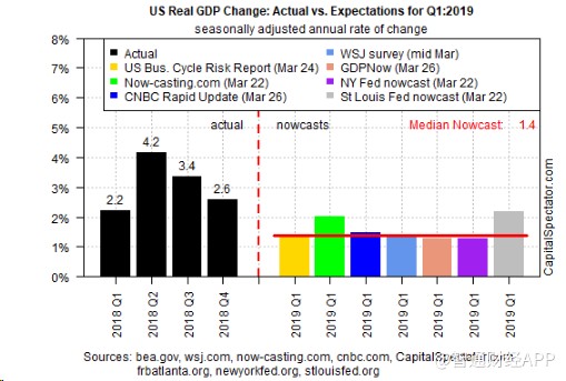 據(jù)智通財(cái)經(jīng)APP了解,美國經(jīng)濟(jì)分析局(BEA)將于4月下旬發(fā)布經(jīng)濟(jì)報(bào)告,根據(jù)《資本觀察家》(Capital Spectator)編制的一組預(yù)估數(shù)據(jù)所得,美國第一季度GDP將繼續(xù)放緩至1.4%(經(jīng)季節(jié)性調(diào)整的年增長率)。此預(yù)估值與本月早些時候公布的預(yù)測維持一致。