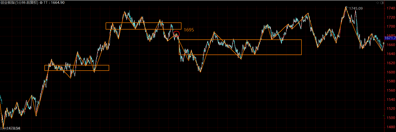 創(chuàng)業(yè)板這里走勢結(jié)構(gòu)已經(jīng)完備,前序中樞底部1640附近可逢低吸納。由于是左側(cè)交易,風(fēng)險(xiǎn)控制線放在1600點(diǎn)附近。防止系統(tǒng)性風(fēng)險(xiǎn)。