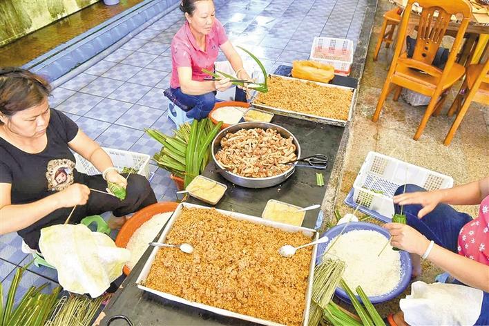 平時,玲姐是一位家庭主婦,每年端午節(jié)前她就變身為“包粽高手”。2017年,張長妹的酒家創(chuàng)下了銷售海膽粽4萬多條的紀錄,最高峰的一天足足包了4000多條海膽粽,玲姐一個人就包了1000條,也創(chuàng)下了個人紀錄。“從早上7點包到晚上差不多12點,最后腰都快直不起來了。”玲姐說,從六七歲就開始看著家里的大人包海膽粽,南澳人包粽技巧都是靠耳濡目染,“小時候,家里老人不讓我們包糯米,只能用沙子來練習?!?/p>