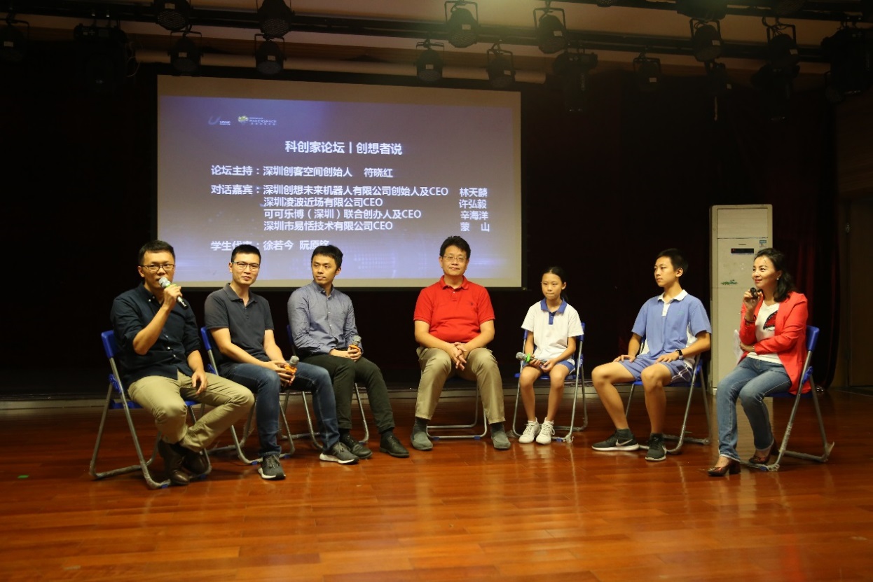 活動以“人工智能——科幻未來”為主題,邀請到了人工智能領(lǐng)域的科學(xué)家,優(yōu)秀創(chuàng)業(yè)者等多位嘉賓通過主題分享、論壇對話以及產(chǎn)品展示體驗(yàn)等形式,給師生們帶來了一場人工智能的知識分享盛宴。香港中文大學(xué)深圳研究院眾創(chuàng)中心的人工智能創(chuàng)新團(tuán)隊亮相本次活動,分別是致力于機(jī)器人操作系統(tǒng) (ROS)的產(chǎn)品化技術(shù)研發(fā)和生態(tài)建設(shè),為高校及企業(yè)提供 ROS課程及技術(shù)解決方案的“深圳創(chuàng)想未來機(jī)器人有限公司”;專注于 STEAM教育的教育科技,致力于透過靈感和科技的有機(jī)結(jié)合,將最新的理念和技術(shù)帶入 STEAM教育領(lǐng)域的“可可樂博(深圳)科技有限公司”;致力于AI語音領(lǐng)域技術(shù)研發(fā),利用優(yōu)于行業(yè)、準(zhǔn)確率大于99.5%的聲紋識別算法,將人工智能、生物辨識與復(fù)雜行業(yè)場景進(jìn)行深度融合的“深圳市聲揚(yáng)科技有限公司”。分別在活動中做了精彩的主題演講、學(xué)生互動及產(chǎn)品展示。