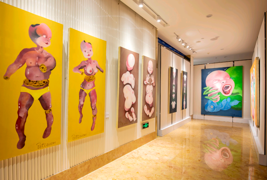 他從不把自己定位在某種藝術(shù)類別里,唯一能夠辨認(rèn)其創(chuàng)作概念的只有“當(dāng)代”一詞,他將自己靈魂深處的叛逆與當(dāng)代藝術(shù)的批判精神結(jié)合,通過(guò)鮮艷的色彩表達(dá)出來(lái)。畫面中那些擁有怪異表情、扭曲肢體,樣貌分崩離析的“人”,帶給觀眾的是獨(dú)樹一幟的視覺(jué)感觸,同時(shí)也呼應(yīng)著作者內(nèi)心的沖突與思考。