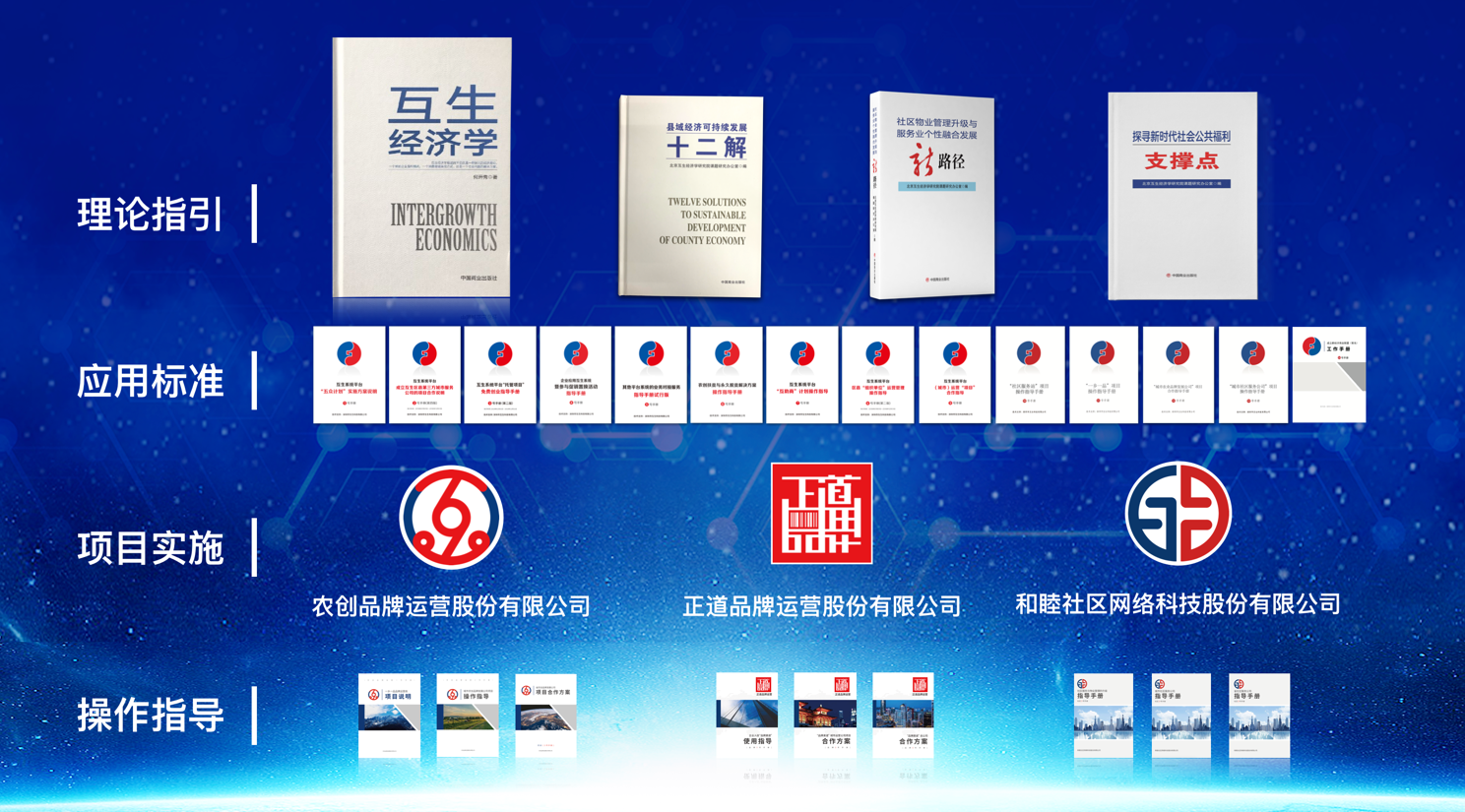 會(huì)上,北京互生經(jīng)濟(jì)學(xué)研究院發(fā)布了“農(nóng)創(chuàng)新抓手”“社區(qū)新范本”,以及由《互生經(jīng)濟(jì)學(xué)》著作人、北京互生經(jīng)濟(jì)學(xué)研究院院長(zhǎng)何開(kāi)秀教授領(lǐng)導(dǎo)課題研究辦公室專項(xiàng)課題組所著述的《縣域經(jīng)濟(jì)可持續(xù)發(fā)展十二解》《社區(qū)物業(yè)管理升級(jí)與服務(wù)業(yè)個(gè)性融合發(fā)展新路徑》《探尋新時(shí)代社會(huì)公共福利支撐點(diǎn)》幾本新書(shū)。農(nóng)創(chuàng)品牌運(yùn)營(yíng)股份有限公司、正道品牌運(yùn)營(yíng)股份有限公司、和睦社區(qū)網(wǎng)絡(luò)科技股份有限公司對(duì)農(nóng)創(chuàng)、和睦、正道三個(gè)項(xiàng)目做了解讀以及三個(gè)項(xiàng)目的國(guó)內(nèi)應(yīng)用者進(jìn)行了應(yīng)用成果分享。
