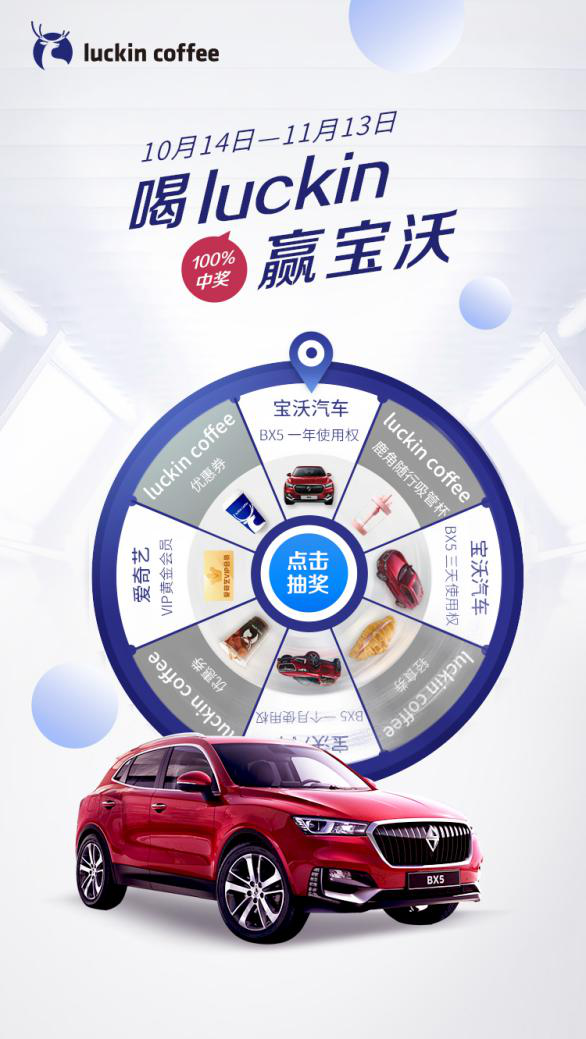 瑞幸咖啡攜手寶沃汽車推出“喝luckin贏寶沃”活動