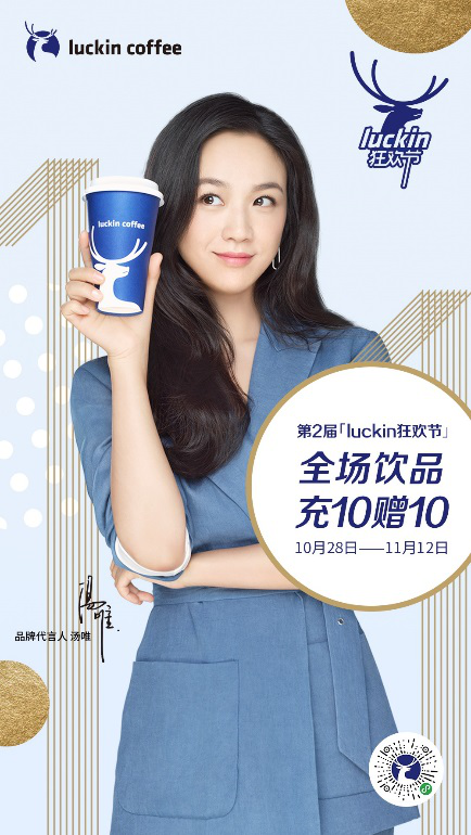 本次2019年雙11第2屆luckin狂歡節(jié),長(zhǎng)達(dá)16天的“充10贈(zèng)10”的超大力度優(yōu)惠,同時(shí)疊加周邊產(chǎn)品88折、“瑞幸X優(yōu)酷特惠套餐”等多重活動(dòng)。不但優(yōu)惠力度堪稱最大,同時(shí),包括湯唯、肖戰(zhàn)和馮唐等各種明星名人IP聯(lián)名潮流周邊產(chǎn)品的參與打call,也讓這屆luckin狂歡節(jié)異彩紛呈,堪稱國(guó)內(nèi)咖啡連鎖行業(yè)內(nèi)最受矚目,也是飲品行業(yè)力度最大的雙11促銷。