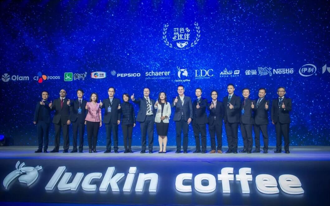 發(fā)布會現(xiàn)場,瑞幸咖啡與百事公司(PepsiCo)、雀巢(Nestle)、恒天然(Fonterra)、雪萊(Schaerer)、路易達(dá)孚(LDC)、奧蘭(Olam)、中糧、希杰(CJ)、伊利、蒙牛、好麗友、卡樂比等14家全球頂級供應(yīng)商共同啟動無人零售戰(zhàn)略發(fā)布儀式。