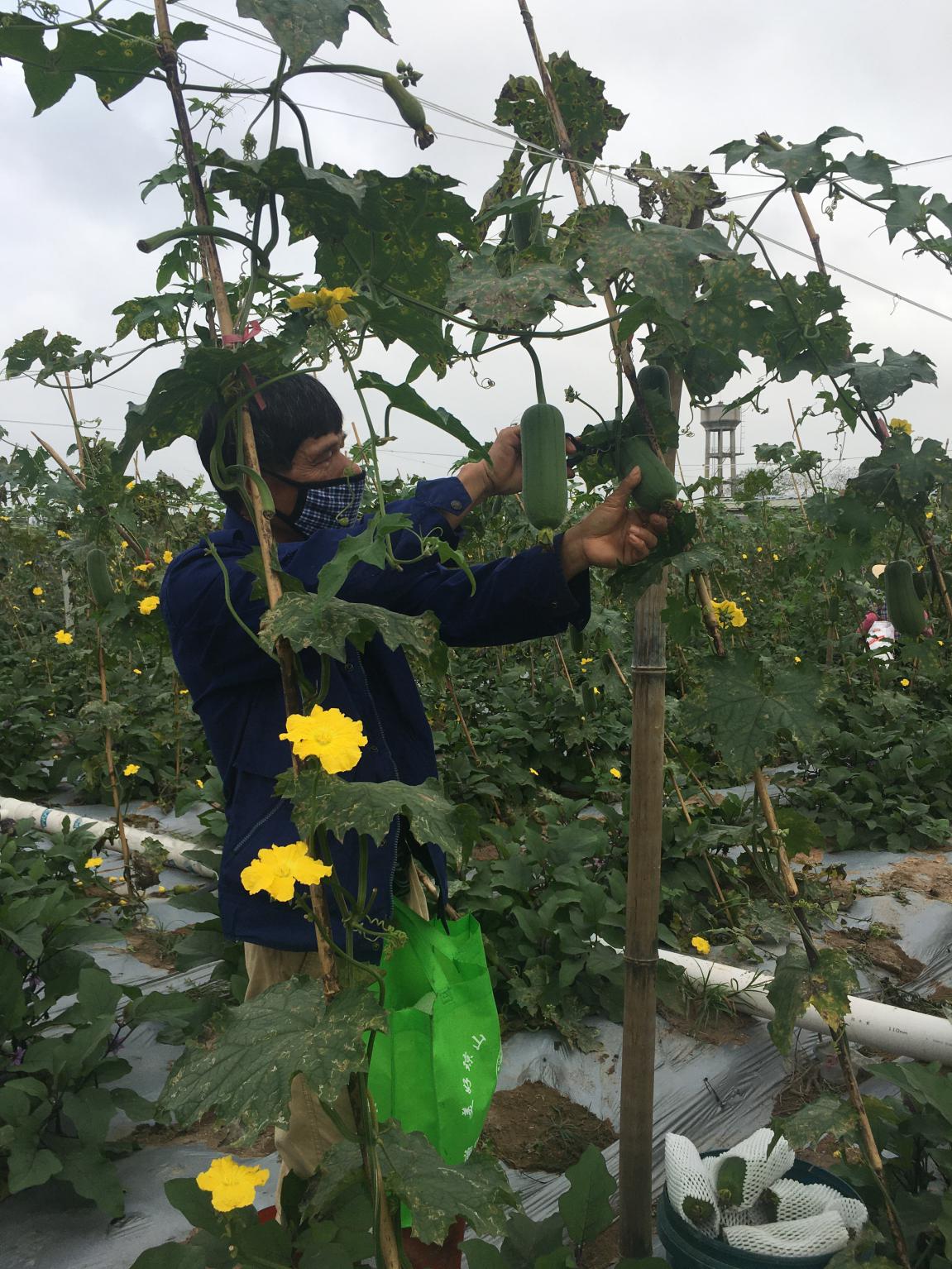 “前幾天,我們?nèi)ズ?诿捞m區(qū)大致坡萬(wàn)眾農(nóng)合社采購(gòu)了農(nóng)戶滯銷的絲瓜和圓茄,絲瓜每斤1.5元,圓茄每斤1元。在疫情沒(méi)來(lái)之前,圓茄采購(gòu)價(jià)大概也要3.5 -4元每斤,絲瓜5 -6元每斤。這次進(jìn)貨價(jià)的降幅高達(dá)75%?!奔覙?lè)福華南區(qū)蔬果采購(gòu)部長(zhǎng)孟毅介紹到。
