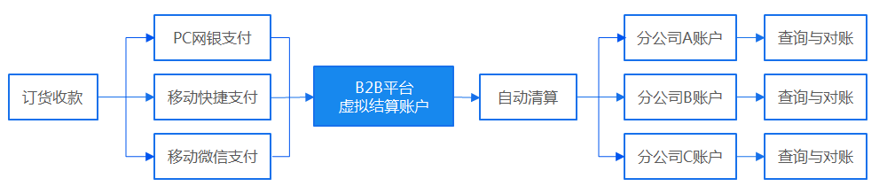 而在網(wǎng)站后臺,系統(tǒng)將自動進行一系列復雜操作:收款后直接根據(jù)預設好的規(guī)則,向負責廣東區(qū)域的分子公司付款,清分到各分子公司的賬戶。系統(tǒng)提供一套獨立賬戶體系,獨立結算、清分,收付款分子公司均有不同的查詢對賬后臺,集團總部也可以獨立匯總查詢。