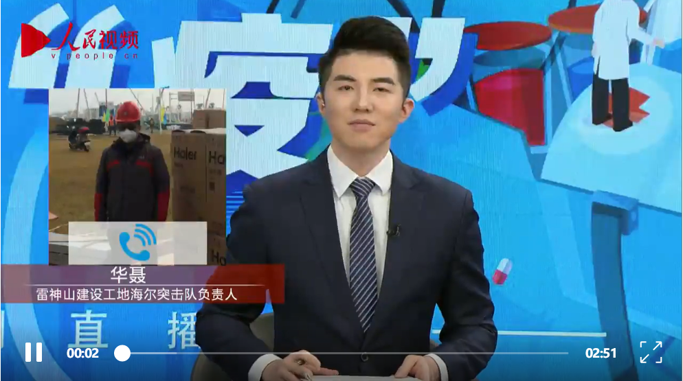 深圳新聞網(wǎng)2020年2月12日訊 近日,人民網(wǎng)、人民視頻特別直播節(jié)目《人民戰(zhàn)“疫”》在雷神山現(xiàn)場連線了來自海爾的突擊隊,向大家展現(xiàn)了一群晝夜駐扎建設(shè)一線的與時間賽跑者。