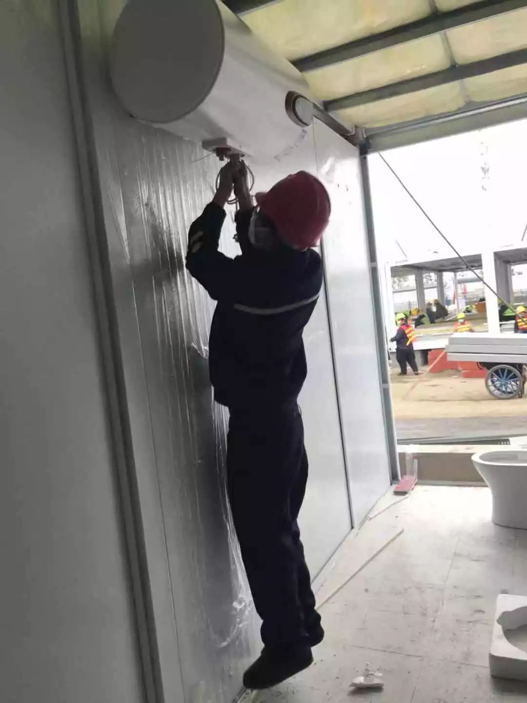 據(jù)了解,雷神山醫(yī)院工地上正在24小時不間斷地施工,現(xiàn)場每時每刻都在變化。目前,雷神山醫(yī)院的部分房間正在進行內(nèi)部裝修,海爾突擊隊的隊員在現(xiàn)場接受項目的統(tǒng)一指揮,2月4日,300臺熱水器設(shè)備按計劃全部安裝完成。