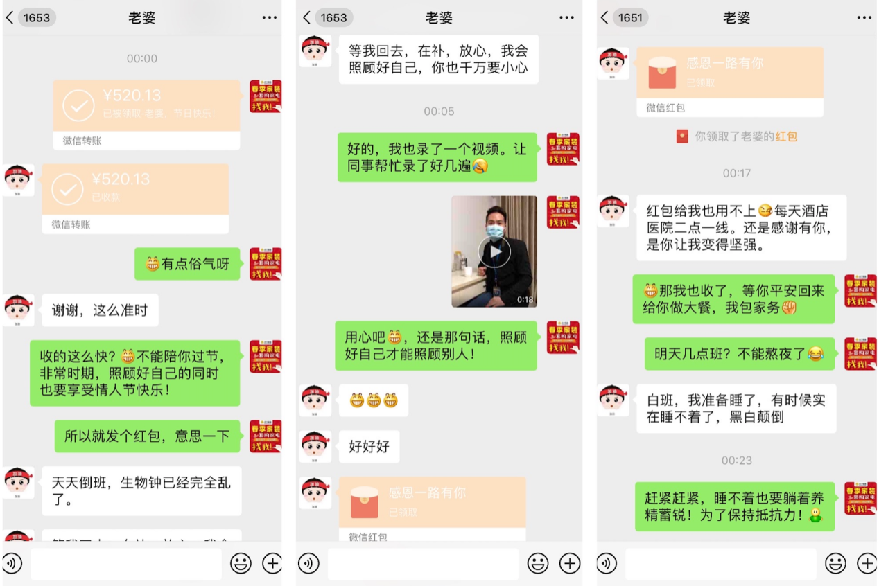 妻子也回贈了紅包,說:“感謝有你,是你讓我變得堅強?!?span style="text-indent: 2em;">盡管疫情讓他們相隔千里,但愛情始終連接著彼此的心。