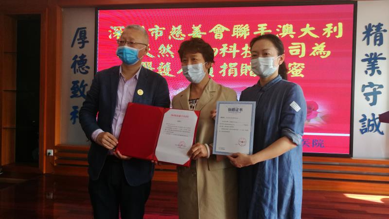 深圳市康寧醫(yī)院黨委書記王建紅,深圳市慈善會(huì)副秘書長董昕,澳大利亞天然生物科技公司駐中國辦事處代表全波,深圳市康寧醫(yī)院黨委委員、黨辦主任工會(huì)副主席陳靜,深圳市康寧醫(yī)院工會(huì)女工委主任劉雪琴,深圳市慈善會(huì)社會(huì)幫扶部部長肖志輝等參加捐贈(zèng)儀式。