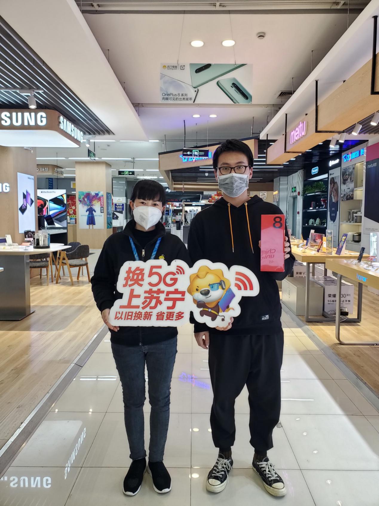 蘇寧青島門店客戶特意穿紅衣服購買一加8