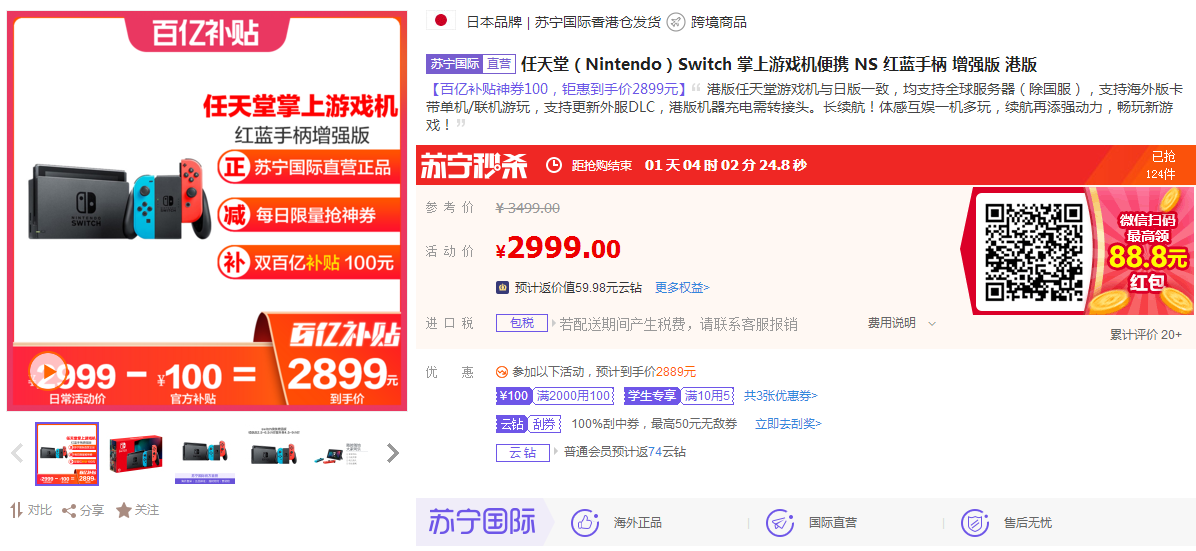 數(shù)據(jù)顯示,6月29日-7月5日,蘇寧國(guó)際口紅銷(xiāo)量增長(zhǎng)明顯,最受歡迎的口紅色號(hào)為mac小辣椒磚紅色。為了給高考生鼓勵(lì),家長(zhǎng)們也是操碎了心。數(shù)據(jù)顯示,6月29日-7月5日,蘇寧國(guó)際switch游戲機(jī)也銷(xiāo)售也創(chuàng)新高。目前,蘇寧國(guó)際該產(chǎn)品正參與百億補(bǔ)貼,優(yōu)惠力度與618期間差不多,不少家長(zhǎng)選擇購(gòu)買(mǎi)這款產(chǎn)品作為孩子們苦讀的獎(jiǎng)勵(lì)。