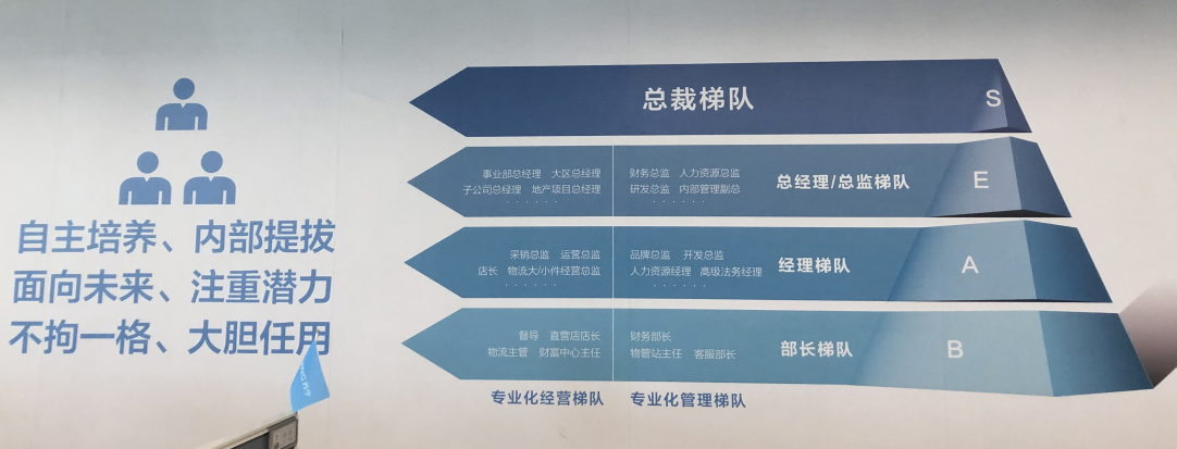 蘇寧主要通過(guò)1200校招工程進(jìn)行人才梯隊(duì)培養(yǎng),將人才團(tuán)隊(duì)劃分為B梯隊(duì)(部長(zhǎng)梯隊(duì))、A梯隊(duì)(經(jīng)理梯隊(duì))、E梯隊(duì)(總經(jīng)理/總監(jiān)梯隊(duì))、S梯隊(duì)(總裁梯隊(duì)),逐層選拔培養(yǎng),在潤(rùn)物細(xì)無(wú)聲中形成了組織的人才梯隊(duì)。