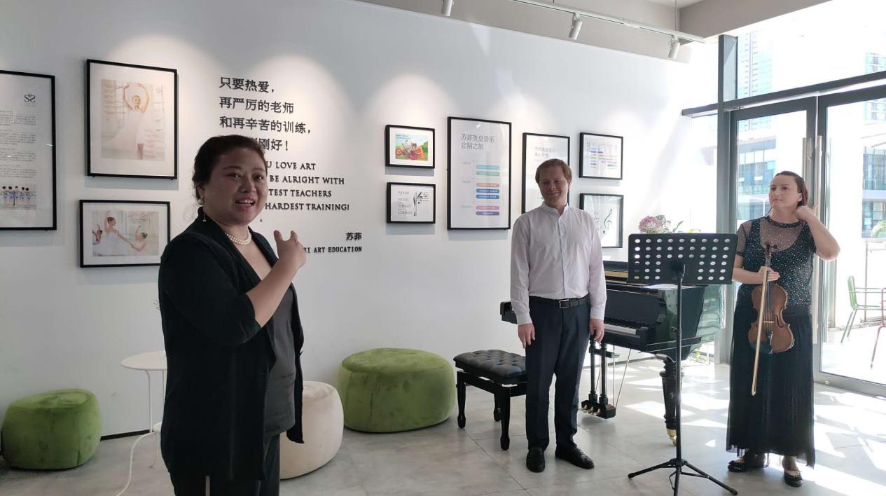 在欣賞完來自白俄羅斯的鋼琴老師和小提琴老師帶來《肖邦練習(xí)曲1C大調(diào)》以及《愛之憂傷》、《美麗的羅斯瑪琳》后,可愛的孩子們帶來了一堂“芭蕾舞”教學(xué)示范課,一群僅4、5歲的孩子們?cè)诎爬傥枥蠋煹膸ьI(lǐng)下,感受芭蕾舞的韻律,學(xué)習(xí)芭蕾舞的基本坐姿以及芭蕾舞的初級(jí)分解動(dòng)作。課程中,老師更注重讓孩子理解芭蕾,了解芭蕾禮儀,也運(yùn)用可愛的教具讓孩子們不分散注意力,全神貫注參與到芭蕾舞學(xué)習(xí)當(dāng)中來。 據(jù)了解,蘇菲教育將在中國(guó)很小眾的英皇課程普及化,讓孩子在家門口就可以接觸到國(guó)際通行與高度認(rèn)可的芭蕾舞和鋼琴課程。作為深圳市英國(guó)皇家芭蕾舞和鋼琴的指定考點(diǎn),學(xué)生獲得的證書含金量很高,不但可以在申請(qǐng)國(guó)外大學(xué)時(shí)增加入學(xué)學(xué)分,還可以同步享受國(guó)外大學(xué)獎(jiǎng)學(xué)金制度。與此同時(shí),蘇菲教育在整個(gè)教育過程始終灌輸“雙語(yǔ)教學(xué)”理念,讓外籍教師與雙語(yǔ)教師用純英文或者雙語(yǔ)授課,為孩子們的“全球化視野”打下基礎(chǔ)。