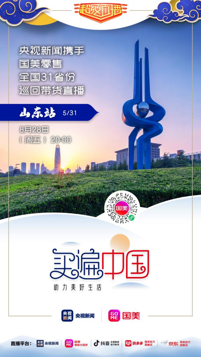 8月28日晚20點,記得鎖定國美微信小程序、拼多多國美官方旗艦店、京東國美官方旗艦店,及央視新聞的客戶端、抖音號,“買遍中國”山東站直播間,一起來看“央視大 boy”康輝帶貨狂奔?。ǔ\娖剑?/p>