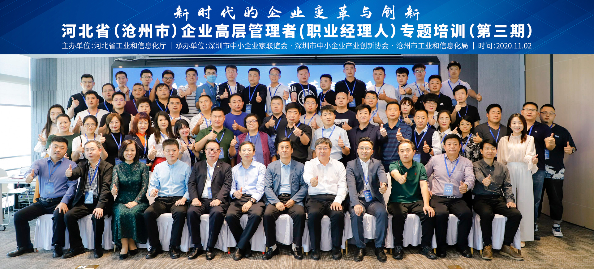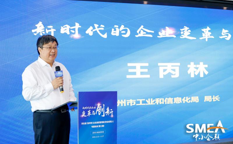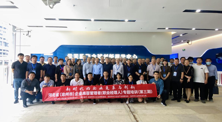 見圳客戶端·深圳新聞網(wǎng)2020年11月9日訊 近日,由河北省工業(yè)和信息化廳主辦,深圳市中小企業(yè)家聯(lián)誼會(huì)、深圳市中小企業(yè)產(chǎn)業(yè)創(chuàng)新協(xié)會(huì)、滄州市工業(yè)和信息化局承辦的“新時(shí)代的企業(yè)變革與創(chuàng)新——河北省中小企業(yè)高層經(jīng)營管理者(職業(yè)經(jīng)理人)專題培訓(xùn)(滄州班)”在深圳隆重開班。來自滄州市產(chǎn)業(yè)集群龍頭企業(yè)、優(yōu)秀民營企業(yè)、“專精特新”企業(yè)、培育擬上市企業(yè)的董事長、總經(jīng)理等共計(jì)56人參加培訓(xùn)。