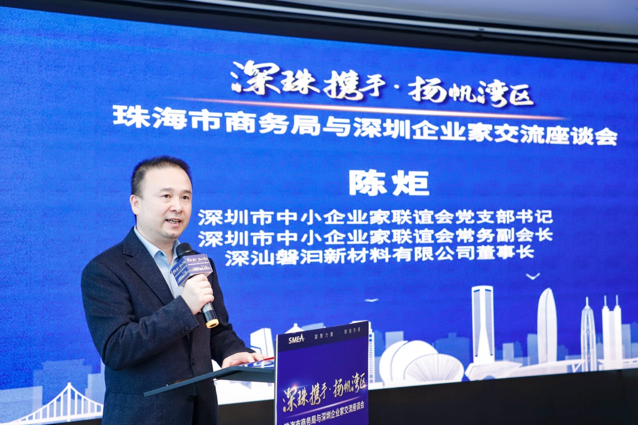 見圳客戶端·深圳新聞網(wǎng)2020年12月16日訊 為進(jìn)一步促進(jìn)珠海、深圳兩地政企互動(dòng)交流,共同推進(jìn)粵港澳大灣區(qū)建設(shè),昨日,以“深珠攜手·揚(yáng)帆灣區(qū)”為主題的珠海、深圳政企交流座談會(huì)在深圳舉行。此次活動(dòng)由珠海市商務(wù)局主辦,珠海市投資促進(jìn)中心、深圳市中小企業(yè)產(chǎn)業(yè)創(chuàng)新協(xié)會(huì)承辦,深圳市中小企業(yè)家聯(lián)誼會(huì)協(xié)辦。珠海市商務(wù)局副局長(zhǎng)楊富邦,珠海市投資促進(jìn)中心副主任李俊霞,深圳市中小企業(yè)家聯(lián)誼會(huì)黨支部書記、深圳市中小企業(yè)家聯(lián)誼會(huì)常務(wù)副會(huì)長(zhǎng)、深汕磐汩新材料有限公司董事長(zhǎng)陳炬等50余名政府和企業(yè)家代表參加活動(dòng)。大會(huì)由深圳市中小企業(yè)家聯(lián)誼會(huì)執(zhí)行會(huì)長(zhǎng)連榮衛(wèi)主持。