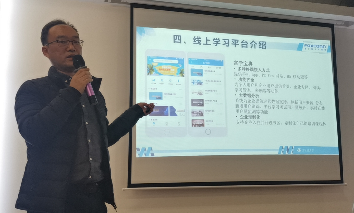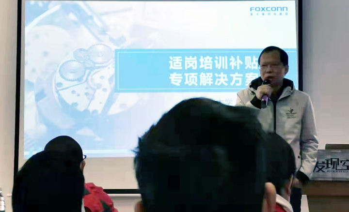 富士康大學資深專理李治佑帶來了適崗培訓補補貼的專項解決方案,李專理表示,富士康大學會開放更多的課程資源,賦能富友制造企業(yè),促進灣區(qū)制造企業(yè)筑基升級。