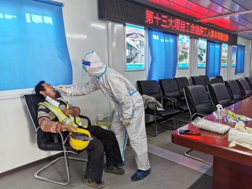 見圳客戶端·深圳新聞網(wǎng)2021年2月4日訊 臨近春節(jié),為方便返鄉(xiāng)人員持有效核酸證明回家,消除留守工地人員的顧慮,中建一局華北公司項(xiàng)目部組織“歸鄉(xiāng)通行證”活動,項(xiàng)目部邀請核酸檢測機(jī)構(gòu)進(jìn)工地,上門為項(xiàng)目管理人員和工友做核酸檢測。