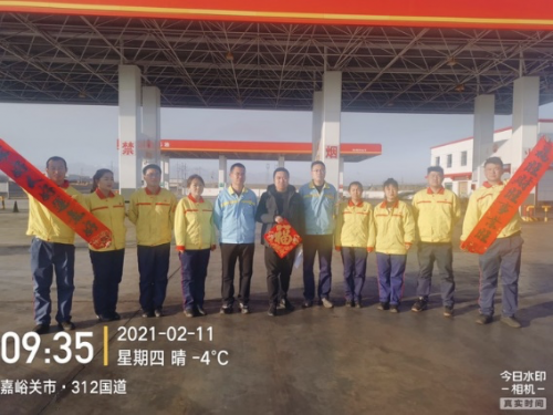 甘肅嘉峪關(guān),加油員們收到能鏈送來的保溫杯和“福”字
