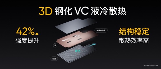 真我GT的性能表現(xiàn),離不開優(yōu)秀散熱技術(shù)的強(qiáng)力支持,創(chuàng)新的3D鋼化液冷散熱不乏好評。作為GT系列戰(zhàn)略成員,真我GT Neo繼承了GT系列的強(qiáng)悍基因,同樣搭載3D鋼化VC液冷散熱。創(chuàng)新的3D鋼化VC液冷散熱不僅大幅度提高了均熱板的強(qiáng)度,同時內(nèi)部的結(jié)構(gòu)優(yōu)化也讓整體的散熱效率進(jìn)一步提升。配合100%覆蓋核心發(fā)熱源的多重立體散熱系統(tǒng),高性能的同時保持冷靜。