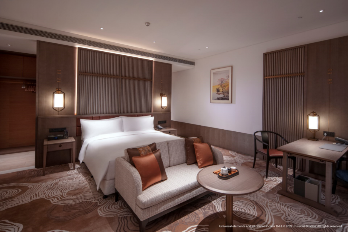 酒店設(shè)計(jì)以當(dāng)代視角詮釋中國(guó)傳統(tǒng)文化及人文歷史底蘊(yùn),兼具現(xiàn)代便捷與奢華典雅。與此同時(shí),400間寬敞雅致的客房設(shè)計(jì)也融入了中國(guó)古典皇家園林的精巧設(shè)計(jì),以天然材料刻畫自然之美。作為品牌標(biāo)志性的元素之一,所有客房均配備有煮茶套裝,賓客可以在驚險(xiǎn)刺激的主題游園體驗(yàn)之后享受輕松愉悅的茗茶時(shí)光;此外,位于酒店大堂吧的專屬茶室還將提供專業(yè)的互動(dòng)品茗體驗(yàn)。