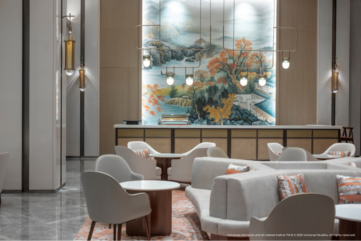 環(huán)球影城大酒店位于北京環(huán)球影城主題公園入口,入住賓客將可以俯瞰園區(qū)的絕佳景觀。作為全球首家以環(huán)球品牌命名的主題酒店,環(huán)球影城大酒店在設(shè)計(jì)中融入了極具加州特色的西班牙復(fù)興風(fēng)格,巧妙再現(xiàn)好萊塢電影黃金時(shí)代的輝煌與風(fēng)華,同時(shí)結(jié)合了中性色調(diào)的現(xiàn)代演繹以及繽紛色彩點(diǎn)綴。酒店大堂內(nèi)西班牙風(fēng)格的噴泉和玻璃馬賽克三角梅花墻帶來(lái)輕快靈動(dòng)的熱帶海岸氣息,定制的橙花調(diào)香氛則令人仿佛置身加州,讓賓客感受到典雅而充滿活力的度假氛圍。酒店公共區(qū)域內(nèi)的珍貴電影海報(bào)將帶領(lǐng)賓客探尋動(dòng)人心扉的光影世界背后,精彩絕倫卻不為人知的創(chuàng)作瞬間。從復(fù)古經(jīng)典系列,到現(xiàn)代電影杰作,更有大量的幕后花絮呈現(xiàn)一段歷久彌新的電影之旅,回溯環(huán)球超過(guò)一個(gè)世紀(jì)的電影歷史的光輝歷程,致敬品牌在光影史上的耕耘與貢獻(xiàn)。