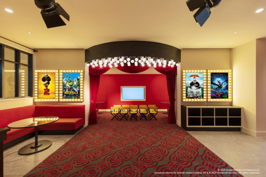 酒店的小小賓客們還可在電影主題的兒童天地開啟令人興奮的專屬電影之旅。復(fù)古影院風(fēng)格的“放映廳”搭配大銀幕前的導(dǎo)演椅或爆米花桶外形的卡通座椅,小影迷們將在歡聲笑語(yǔ)中欣賞環(huán)球影業(yè)的經(jīng)典動(dòng)畫電影。此外,藝術(shù)活動(dòng)空間的創(chuàng)意涂鴉以及視頻游戲區(qū)域?qū)槿規(guī)?lái)歡樂(lè)的親子時(shí)光。
