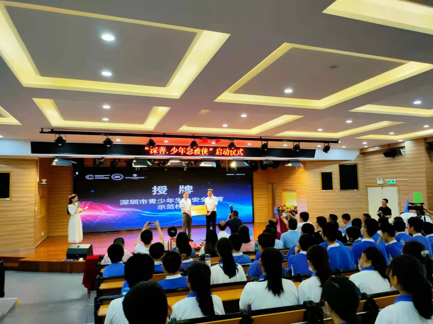 在現(xiàn)場,市教育局、市慈善會與粵美特慈善基金會共同向南山外國語學校(集團)文華學校授予“深善·防災減災示范校園”牌匾。
