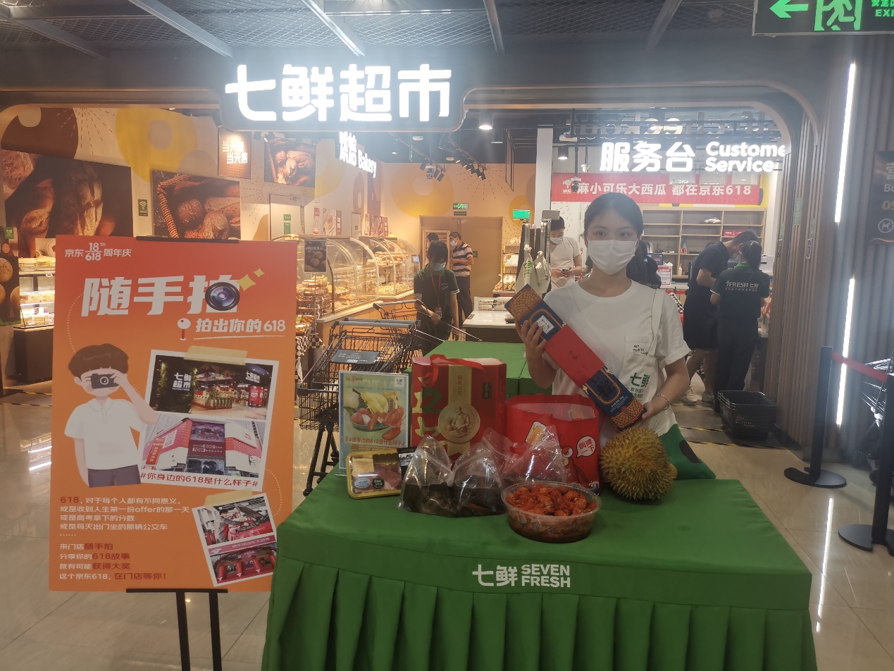 在七鮮超市不僅能盡情吃喝,還能參與到京東618的線下“隨手拍”活動(dòng)。一直到6月18日,前往任意一家京東線下門店,拍攝帶有京東618創(chuàng)意元素的照片,參與與京東微博話題互動(dòng),就有機(jī)會(huì)獲得華為Mate 40 Pro、五菱宏光MINI EV等豪華大獎(jiǎng)。