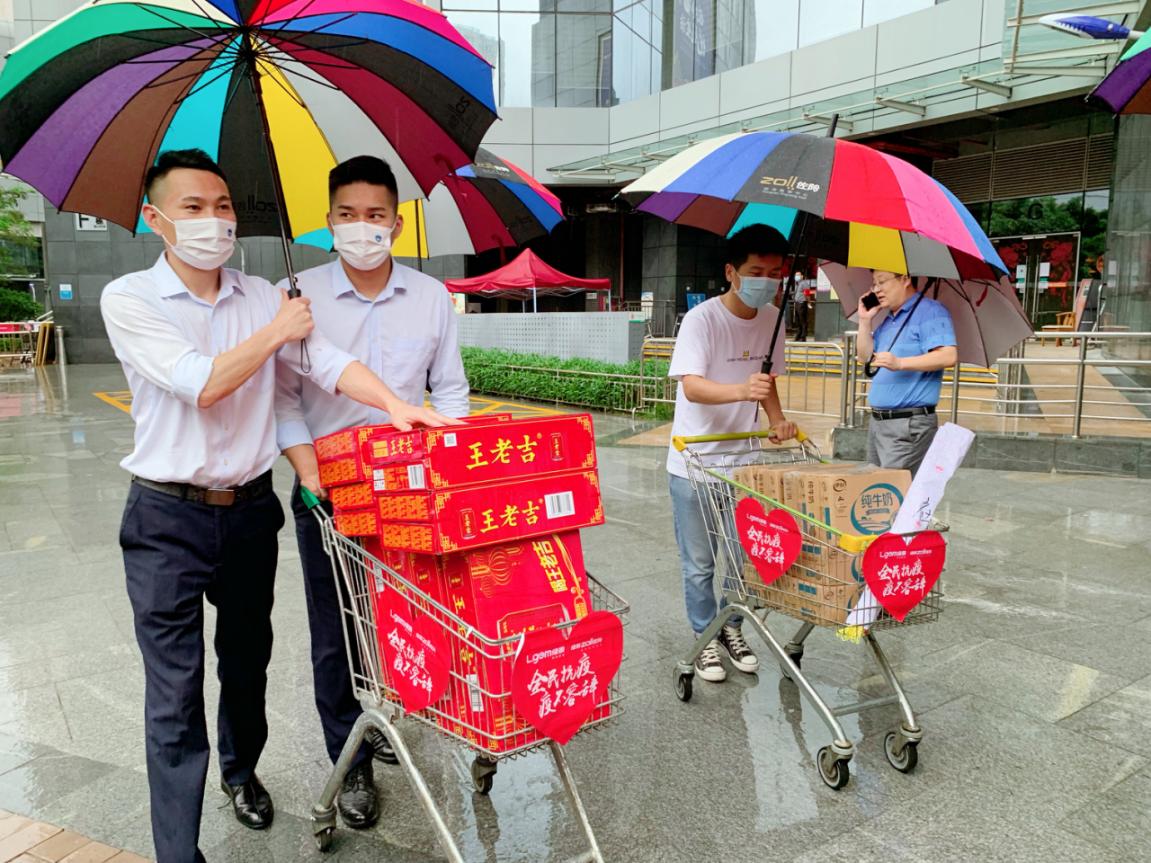 上午9點,深圳正下著暴雨,綠景佐阾虹灣工作人員開始忙碌著“全民抗疫,疫不容辭”公益活動準(zhǔn)備工作,各贊助商戶也陸陸續(xù)續(xù)把捐贈的愛心物資,拿到現(xiàn)場,經(jīng)過大家的共同努力現(xiàn)場逐漸成型,靜待抗疫工作者前往領(lǐng)取。