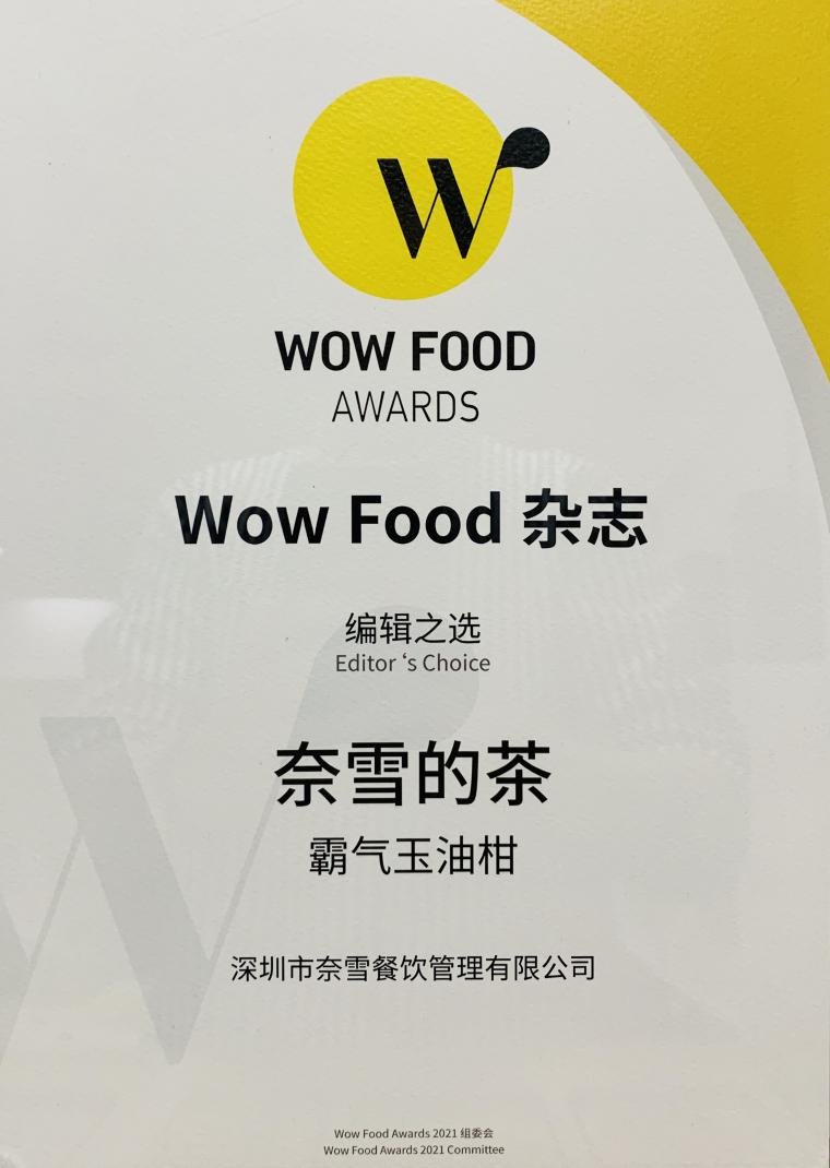 奈雪的茶憑借今年火遍全國(guó)的爆款產(chǎn)品“霸氣玉油柑”,獲得了由亞太地區(qū)極具行業(yè)影響力的食品行業(yè)盛會(huì)之一——FBIF食品飲料創(chuàng)新論壇頒發(fā)的Wow Food雜志“編輯之選”榮譽(yù)稱號(hào),成為FBIF首度推出雜志即納入其中的全球新品案例之一。