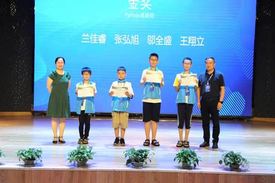 所有選手身體力行彰顯競(jìng)賽精神,一絲不茍。Python初級(jí)組和高級(jí)組競(jìng)賽中還產(chǎn)出一位雙料冠軍。來(lái)自青島賽場(chǎng)三年級(jí)的蘭佳睿選手,斬獲兩個(gè)組別冠軍,尤其在Python高級(jí)組競(jìng)賽中最后一分鐘反超,擊敗多位高年級(jí)選手,編程實(shí)力強(qiáng)勁!