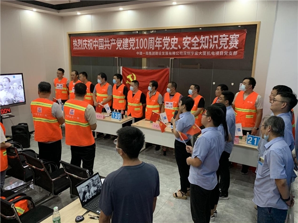 讀特客戶端·深圳新聞網(wǎng)2021年7月30日訊 同心筑夢(mèng),百年芳華,為扎實(shí)推進(jìn)黨史學(xué)習(xí)教育走深走實(shí),創(chuàng)新黨史知識(shí)學(xué)習(xí)方法,濃厚學(xué)習(xí)氛圍,增強(qiáng)學(xué)習(xí)興趣,近日,中建一局集團(tuán)建設(shè)發(fā)展有限公司深圳宇宏大廈機(jī)電項(xiàng)目黨支部舉辦以慶祝中國共產(chǎn)黨建黨100周年“學(xué)黨史、守初心、保安全、促發(fā)展”為主題的黨史、安全知識(shí)競(jìng)賽。此次活動(dòng)參賽代表隊(duì)是由項(xiàng)目廣大工友組成“忠黨隊(duì)”、“愛國隊(duì)”、“為民隊(duì)”、“筑夢(mèng)隊(duì)”,共計(jì)50余人參加了本次活動(dòng)。