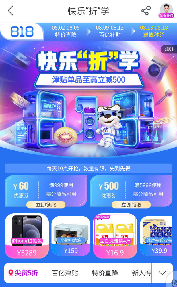 以818大促為例,8月12日至18日期間,“真快樂(lè)”以“特價(jià)直降”“百億津貼”和“巔峰秒殺”三重活動(dòng)讓利消費(fèi)者,一重更比一重優(yōu)惠?;顒?dòng)福利覆蓋食品酒水、服飾鞋包、家居家裝、日用百貨、母嬰玩具、美妝個(gè)護(hù)、家用電器等全品類(lèi)品質(zhì)好物。與此同時(shí),消費(fèi)者不僅可以享受“真快樂(lè)”提供的折扣優(yōu)惠,還可以通過(guò)國(guó)美“折上折A PP”領(lǐng)券,再次享受優(yōu)惠,實(shí)現(xiàn)折上再折,折上再減。無(wú)需費(fèi)心拼單、湊單,一鍵領(lǐng)取優(yōu)惠券,折扣即可到手。
