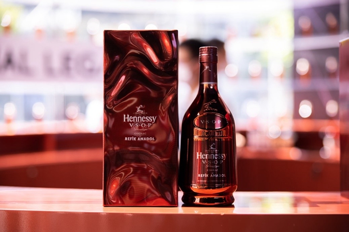 通過(guò)展示著軒尼詩(shī)V.S.O.P雷菲克·安納多爾特別版禮盒的“邑想酒廊”,來(lái)到“邑想密室”,藝術(shù)家特別打造的大型沉浸式視聽(tīng)裝置《Sense of Heritage》在此震撼呈現(xiàn)。這個(gè)充滿(mǎn)未來(lái)感的“無(wú)限空間”,用于投影其在干邑區(qū)所收集的數(shù)據(jù)圖像。置身其中,幻變的色彩、形狀、浮雕、紋理,令軒尼詩(shī)品鑒委員會(huì)專(zhuān)家的各種情感可視可觸可感,足以打通感官鏈路,引人“邑”想天開(kāi)。