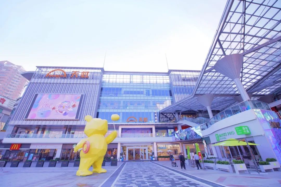 常平天虹購(gòu)物中心擁有特色十足的盒子+情景主題街區(qū)建筑布局。多首層式設(shè)計(jì),讓顧客可以自由地從不同樓層進(jìn)入商場(chǎng),打破傳統(tǒng)“盒子”建筑的封閉空間感,使逛街充滿樂(lè)趣。購(gòu)物中心門前的常平首家 IP休閑歡樂(lè)廣場(chǎng),擁有6米高泡泡熊雕塑、燈光音樂(lè)噴泉等娛樂(lè)設(shè)施,為周邊居民創(chuàng)造一個(gè)可玩、可親、可打卡的戶外體驗(yàn)空間。