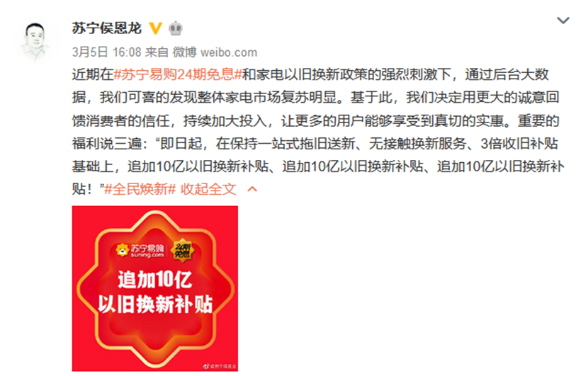 自2月10日聯(lián)合各大家電品牌推出“開倉(cāng)計(jì)劃”以來,蘇寧315“全民煥新節(jié)”不斷往消費(fèi)市場(chǎng)注入強(qiáng)心劑。