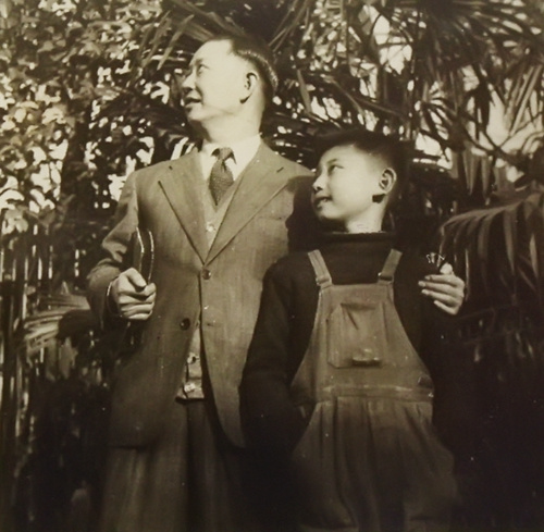 資料圖:梅蘭芳先生與兒時(shí)的梅葆玖。梅瑋供圖。